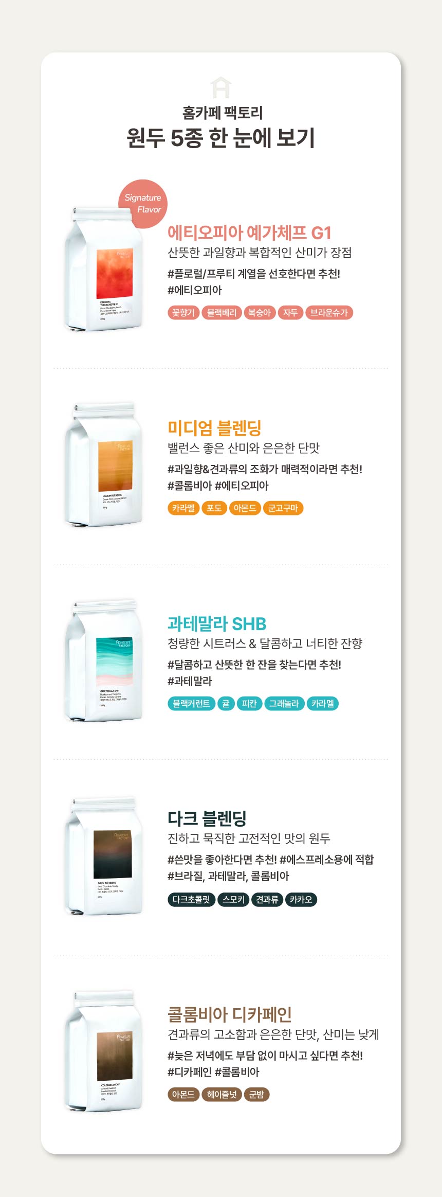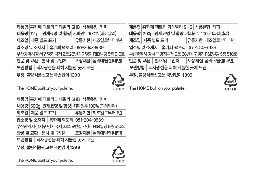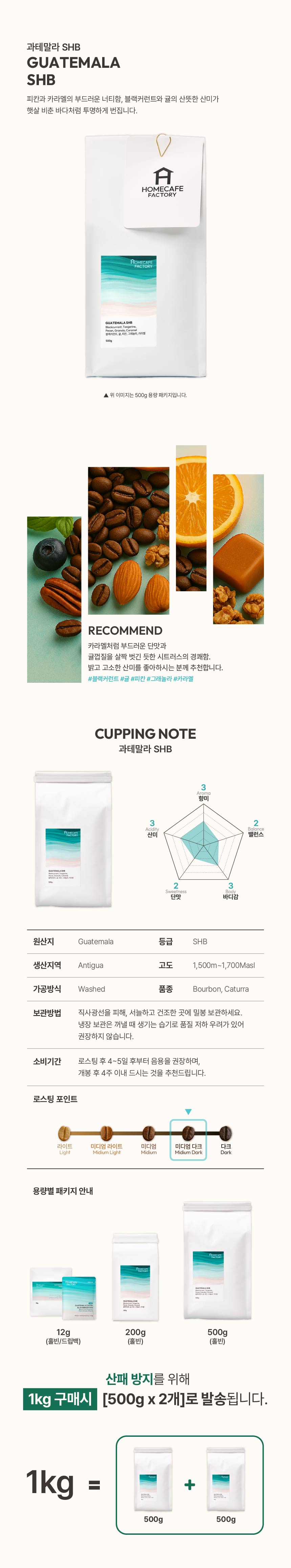 홈카페 팩토리 과테말라 SHB 홀빈 원두커피 로스팅 드립 (200g/500g/1kg)
